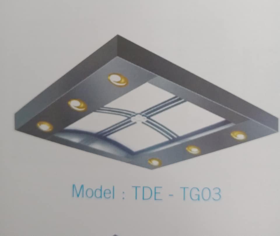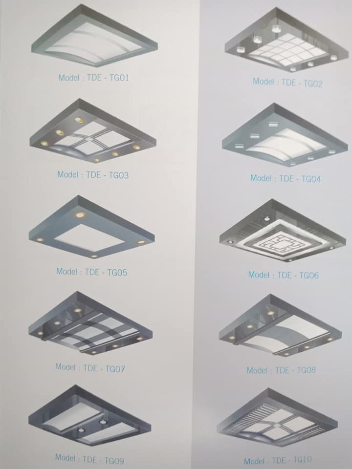 Trần giả thang máy thông thường gồm hai chi tiết, một là khung và hai là phầm họa tiết vừa để tạo họa tiết trang trí vừa để cho ánh sáng từ phía trên chiếu qua: